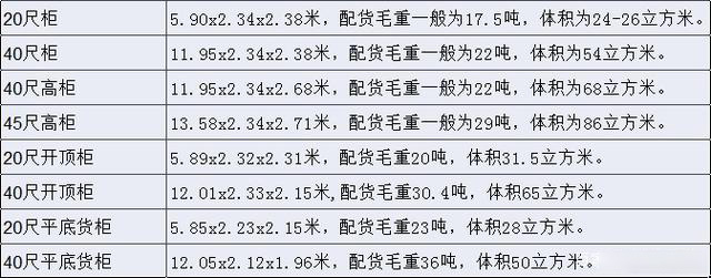 1、集裝箱:一種能反復(fù)使用、便于快速裝卸的標(biāo)準(zhǔn)化貨柜,有20尺,40尺,45尺等,下列對(duì)應(yīng)的尺寸表,內(nèi)容積。