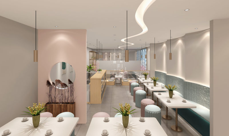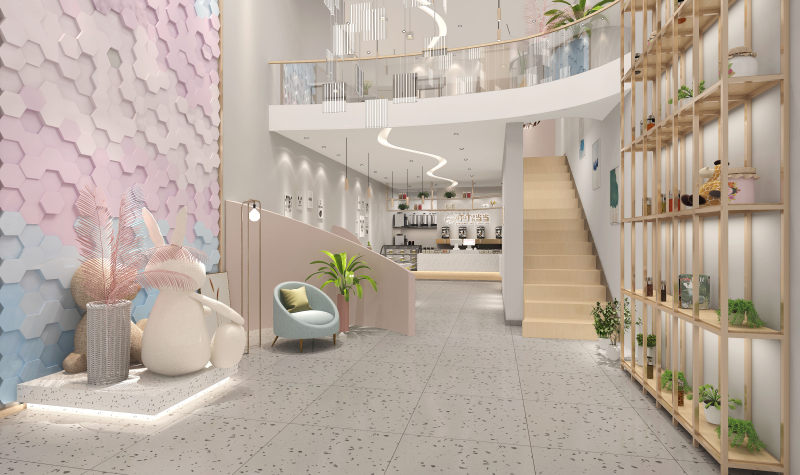 ?因店內(nèi)由樓梯結(jié)構(gòu)占用太多的空間,使店內(nèi)空間邊的比較局限,所以為排隊(duì)而設(shè)計(jì)的等候區(qū)(自助打包區(qū)),層層遞進(jìn),等候取杯區(qū)可供小憩,還可以分散待出杯的人流,減少擁堵,便于快速撤離。