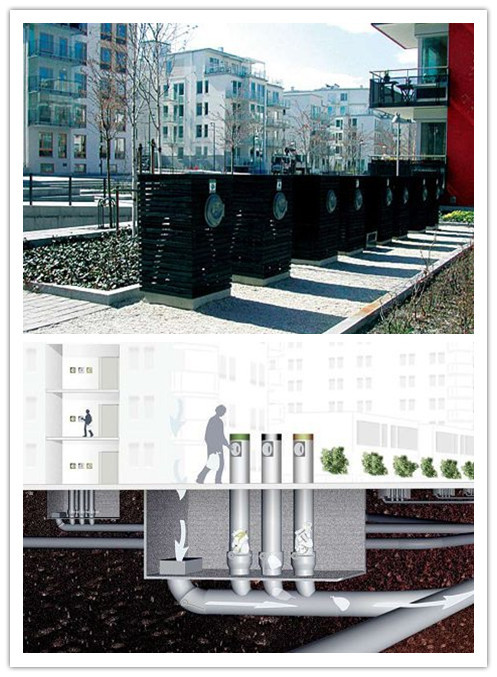 日本的垃圾處理技術(shù)讓人印象深刻,但要說(shuō)到回收速度,瑞典的漢馬貝濱海新城則更勝一籌。在這里,街邊的分類(lèi)垃圾桶就是通往垃圾回收處理廠(chǎng)的直連豎井,每天早上和傍晚,抽氣機(jī)和垃圾控制閥門(mén)都會(huì)被開(kāi)啟,讓垃圾以70公里的時(shí)速奔向郊區(qū)的垃圾綜合處理站進(jìn)行處理。由于被丟棄時(shí)垃圾已經(jīng)被分為七類(lèi),被送到垃圾處理站的垃圾幾乎不必分揀——可燃物、紙類(lèi)、廚余垃圾等便立刻各自輪回充分貢獻(xiàn)價(jià)值了。在這里,垃圾從扔進(jìn)垃圾桶到被回收利用,最快只需要15分鐘。這種處理迅速的環(huán)保垃圾桶還曾經(jīng)出現(xiàn)在2010年上海世博園內(nèi),因其綠色的造型還被人們稱(chēng)作“綠芽”。它分為可回收和其他兩類(lèi)垃圾,這款垃圾桶有自動(dòng)控制設(shè)備,當(dāng)儲(chǔ)存的垃圾達(dá)到一定量后,將聯(lián)通地下的管道網(wǎng)絡(luò),通過(guò)強(qiáng)大的抽風(fēng)機(jī)將垃圾“吸”到近千米外的“垃圾收集站”。
