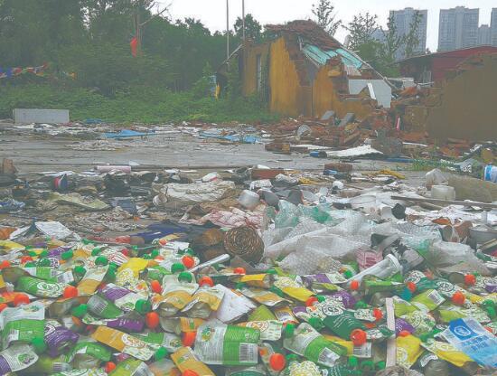 除了大量的建筑垃圾,還有數(shù)量同樣不少的生活垃圾夾雜其間。