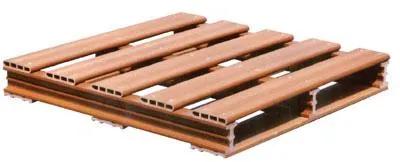 木塑復(fù)合托盤是一種最新的復(fù)合材料托盤。它主要采用擠出機擠出木塑復(fù)合型材,再組裝而成。