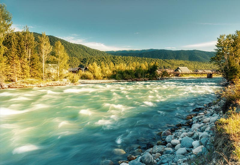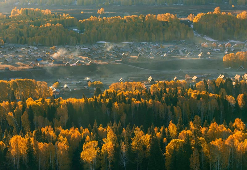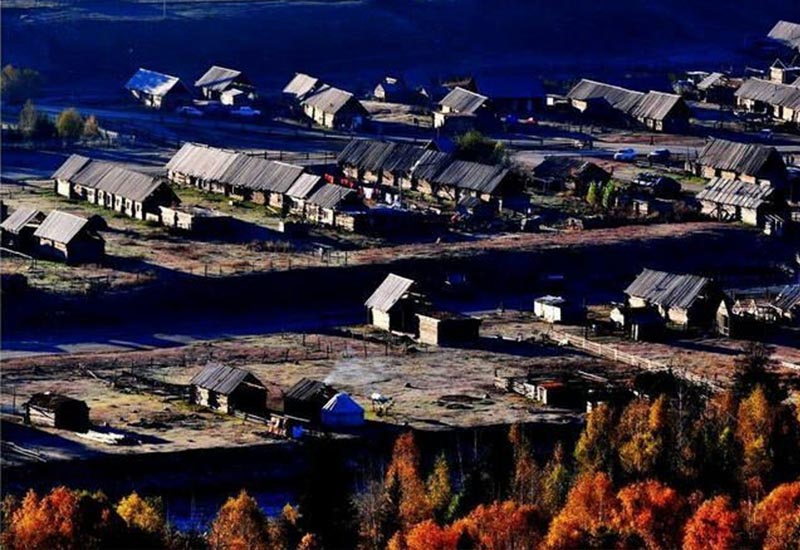 在新疆美麗的喀納斯湖旁,有一個小小的山村——禾木村,它坐落在崇山阻隔的一個大河谷里,秋天,放眼望去,都是熱烈而明朗的金黃色——小河、木屋、炊煙、樺林以及禾木橋上放牧的人們。原木壘砌的木屋散布在村落,牧馬人在叢林間揚塵而過,萬山黃遍的醉人秋色在炊煙中宛若仙境,古樸的山村景致,像喀納斯湖一樣充滿神秘的色彩。 禾木村最惹人注目的就是那一棟棟小木屋和成群結(jié)隊的牧群與雪峰、森林、草地、藍天白云構(gòu)成了獨特的自然文化景觀。牧歸時分,白樺樹在夕陽的余暉下閃耀著金色的光芒,折射出一幅幅幽美、恬靜、色彩斑斕的俄羅斯油畫。