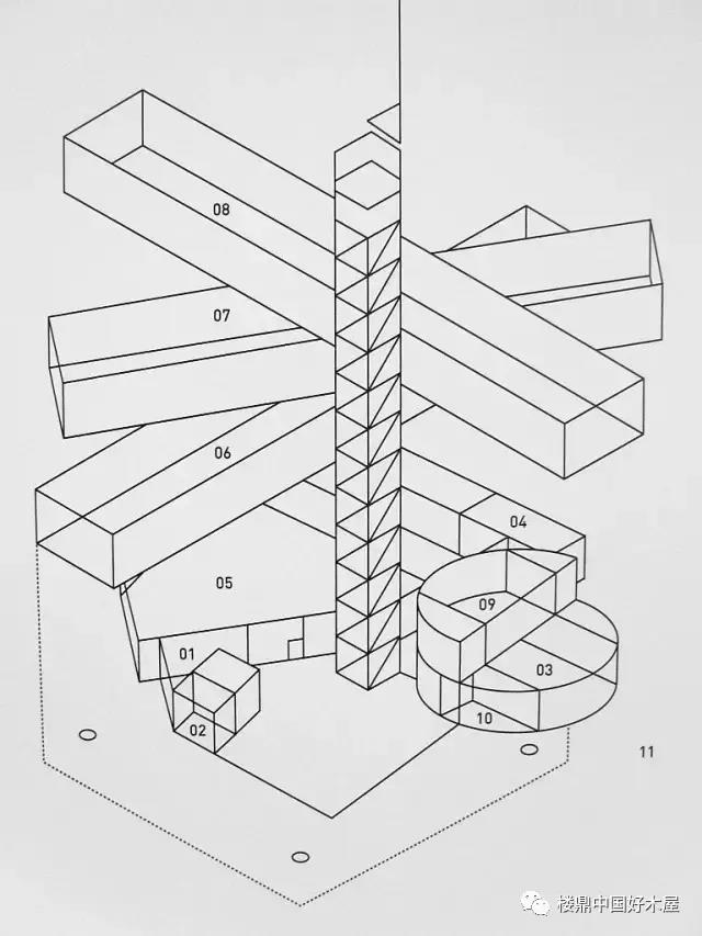 該項(xiàng)目的跨度為47m,所有結(jié)構(gòu)均由底部中心的柱支撐。建筑師系統(tǒng)結(jié)構(gòu)的一小部分,來自日本和中國傳統(tǒng)的懸臂式結(jié)構(gòu)。