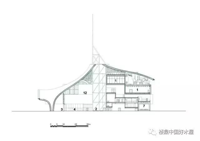 從上面的草圖看,建筑屋頂只是另一種做法。 ARUP能夠形成自由屋頂表面的形狀,最后獲得良好的形狀和合理的力量。 Herman Blumer認(rèn)為木屋頂?shù)慕Y(jié)構(gòu)設(shè)計(jì)。這是建筑師和建筑師之間合作的結(jié)果。