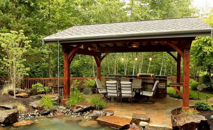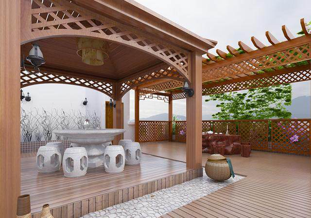在的庭院設(shè)計(jì)中,無(wú)論是全封閉式的還是開放式的涼亭都會(huì)給人們帶來許多的方便和快樂。涼亭是庭院中不可缺少的重要部分,它不僅給庭院增添了一份寧?kù)o與和諧,還給人們提供了一個(gè)休憩、學(xué)習(xí)、休閑、思考的場(chǎng)所。在亭的設(shè)計(jì)中位置的選擇、材料選擇是很關(guān)鍵的,它運(yùn)用不同的材料營(yíng)造出不同的風(fēng)格,不同的效果,與庭院形成完整的風(fēng)格。