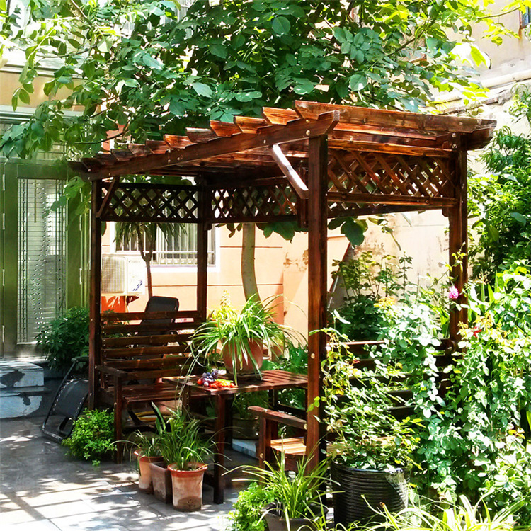 涼亭的建筑材料多使用木材、混泥土、鋼材等做梁柱,裝飾構(gòu)造則多使用木材或鋼材。木質(zhì)涼亭應(yīng)選用經(jīng)過防腐處理的紅杉木等耐久性其強(qiáng)的木材。需要盤結(jié)縣垂類的藤木時(shí),涼亭設(shè)計(jì)應(yīng)確保植物生長(zhǎng)所需要的空間。因?yàn)闆鐾は聲?huì)形成陰影,所以涼亭內(nèi)不應(yīng)種植草皮,可用不規(guī)則的鐵平石鋪砌地面。