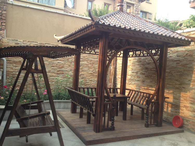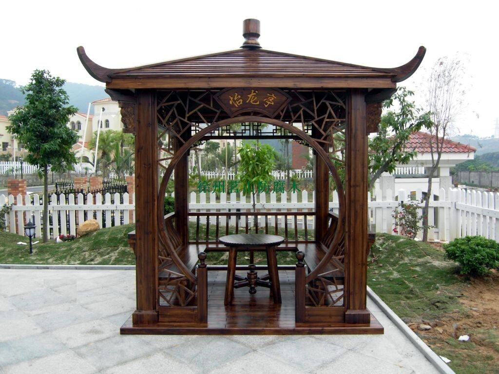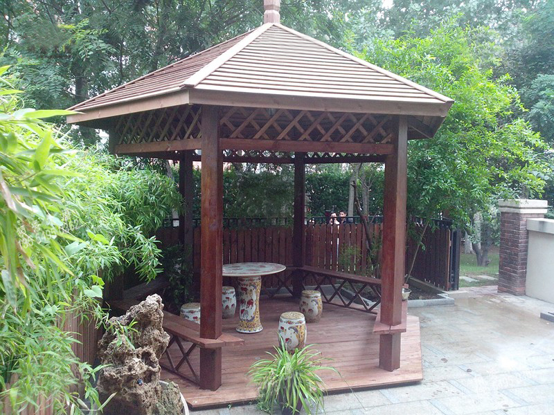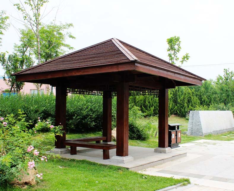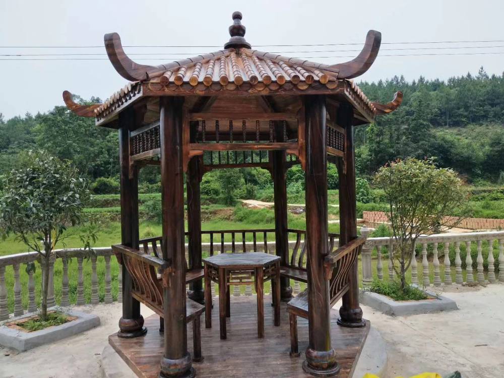 分享文章:碳化木涼亭建造