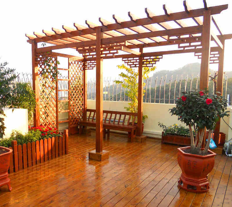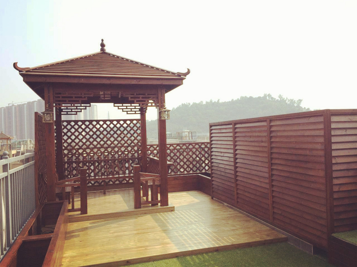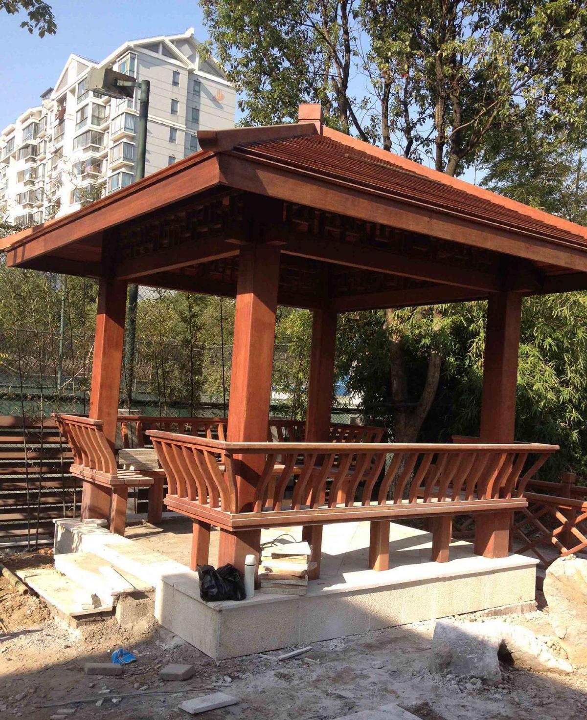 防腐木涼亭,是指用防腐木組建而成的涼亭。所使用的防腐木是經過特殊防腐工藝處理后的木材,具有防腐爛、防白蟻、防真菌的功效。故此類涼亭穩(wěn)定性強、使用期限長、性價比高。防腐木專門用于戶外環(huán)境的露天木地板,并且可以直接用于與水體、土壤接觸的環(huán)境中,是戶外木地板、園林景觀地板、戶外木平臺、露臺地板、戶外木棧道及其他室外防腐木涼亭的首選材料。