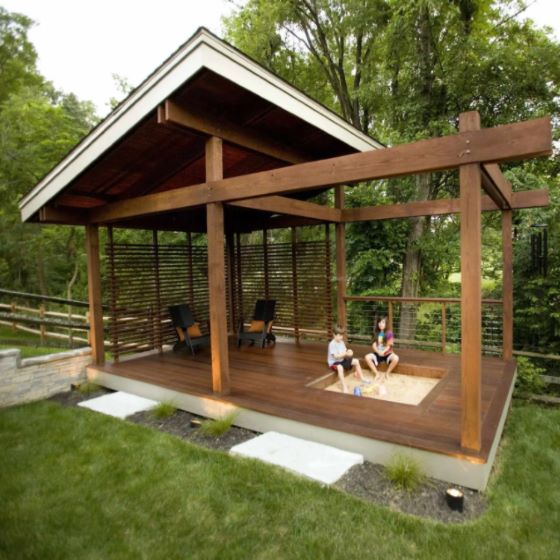 四角涼亭:四角涼亭屬于是比較歐式的木亭造型,富有現(xiàn)代美感。