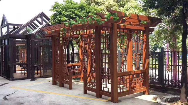 分享文章:庭院防腐木葡萄架