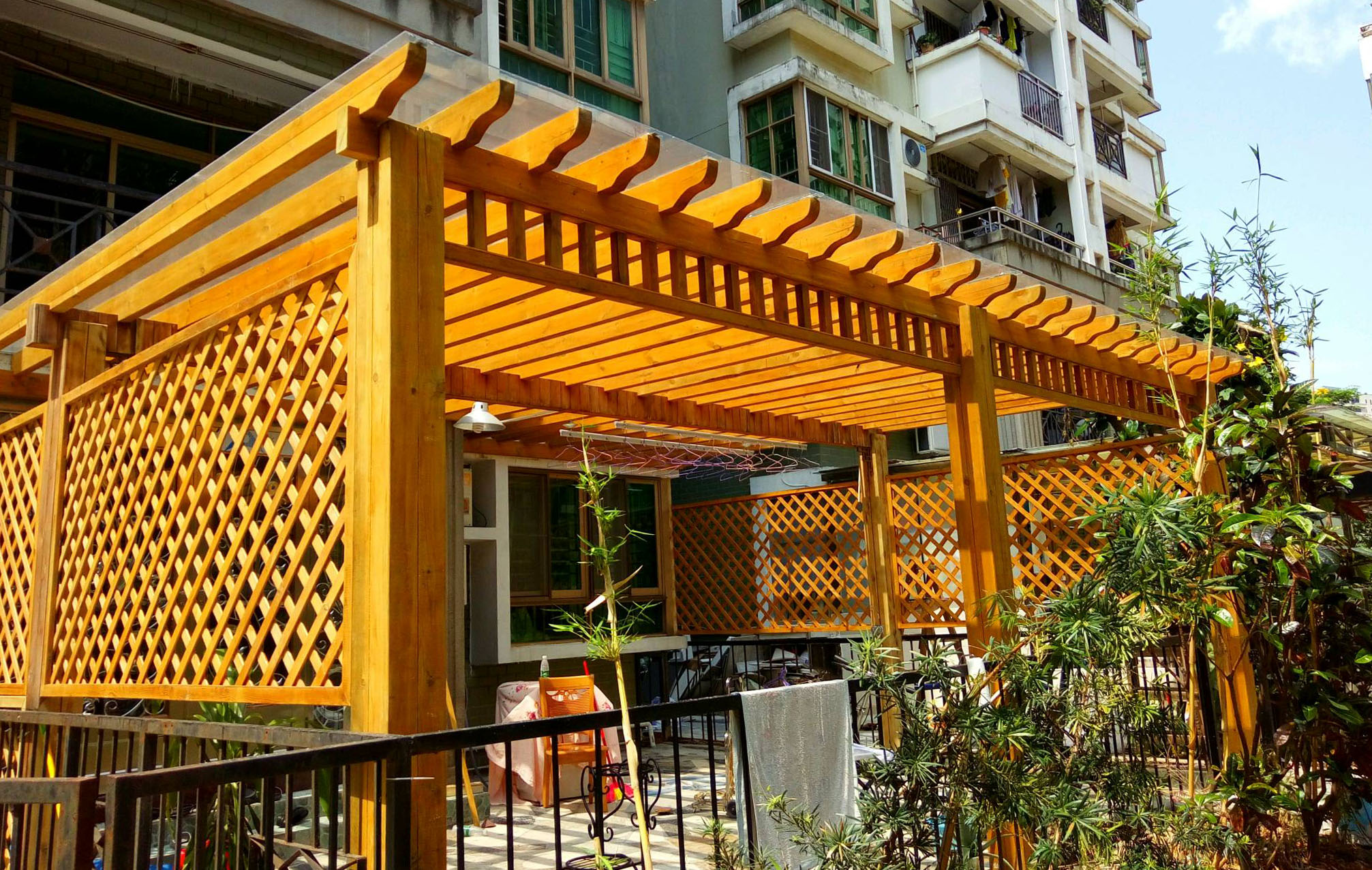構(gòu)成景觀、組織空間和遮陽休息是鋁合金葡萄架較為主要的功能,除此之外,在鋁合金葡萄架的柱體或柱間還可以結(jié)合博古架或布展臺等設(shè)施,展覽盆栽花卉或盆景,以充分展示鋁合金葡萄架在結(jié)合植物方面所特有的魅力。它的建造不只是為生活提供休憩的地方,它更像是是一種文化和意識的寄托。