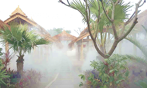 其超強(qiáng)的可控性決定了它還能在室外被廣泛運(yùn)用,像旅游景點(diǎn)、城市建設(shè)、房產(chǎn)小區(qū)等,乃至還在現(xiàn)代農(nóng)業(yè)范疇發(fā)揮其特有的降溫、控濕效果。應(yīng)該說,在室外,這套體系的運(yùn)用更能表現(xiàn)巧奪天工的感覺,人類與自然的和諧統(tǒng)一也有了更理性的表現(xiàn)。?