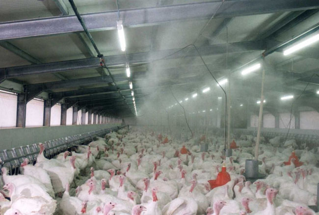 2、調(diào)節(jié)溫度。由于噴霧加濕機(jī)運(yùn)行時(shí)噴灑出的霧化顆粒非常細(xì)小,只有5-15微米,很容易吸收周圍空氣中大量的熱量從而被蒸發(fā),達(dá)到降低溫度的目的,因而可以實(shí)現(xiàn)一定空間內(nèi)的溫度調(diào)節(jié),從這一點(diǎn)上來(lái)說(shuō)也是符合養(yǎng)雞的標(biāo)準(zhǔn)的。