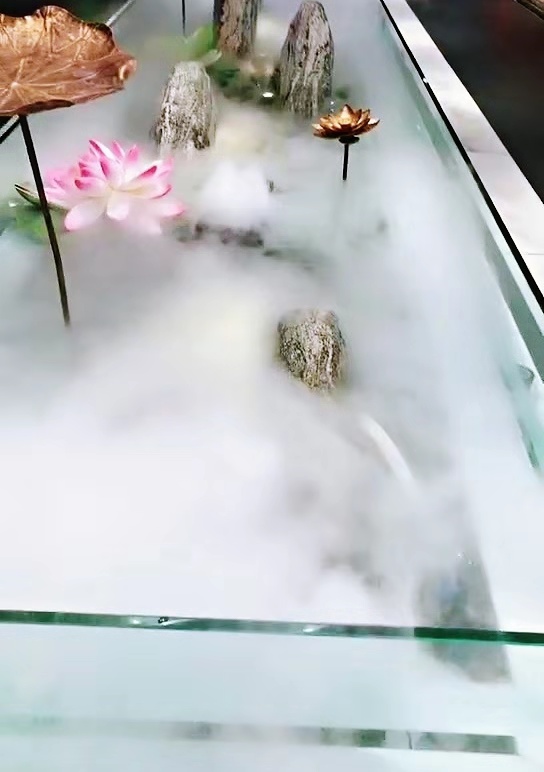 現(xiàn)在餐飲店為了吸引更多的顧客都會(huì)在店內(nèi)設(shè)計(jì)一些特色景觀,比如說(shuō)魚(yú)池、假山、鮮花裝飾等等,用餐環(huán)境的精美能夠帶來(lái)更多人氣。現(xiàn)在很多人對(duì)“吃”不僅僅要求味道,更加注重“享受吃的過(guò)程”,為了滿足顧客的這種需求更是絞盡腦汁,人工造霧設(shè)備被應(yīng)用到餐飲行業(yè),創(chuàng)造夢(mèng)幻般的霧化景觀效果,打造特色景觀,吸引更多顧客前往,為餐飲店帶來(lái)更多利益。