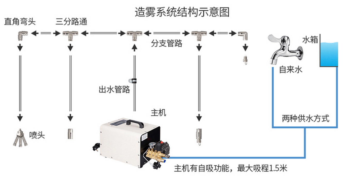 霧噴霧咀每秒能生50億個霧滴,霧滴的直徑僅為0.5-15um,尤如山中云霧,在空氣中迅速蒸發(fā) 形成水蒸汽。