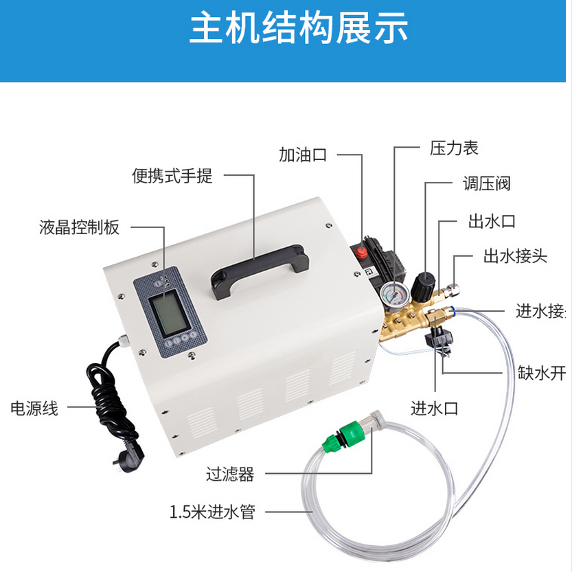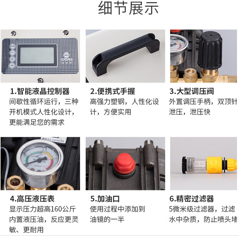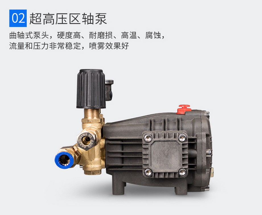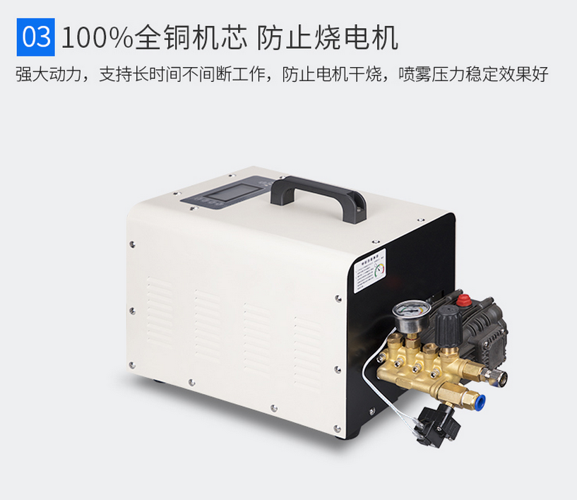 5.安全自動泄壓:當噴霧機停止工作時,機體自動將高壓噴管的壓力釋放,防止噴頭滴水。