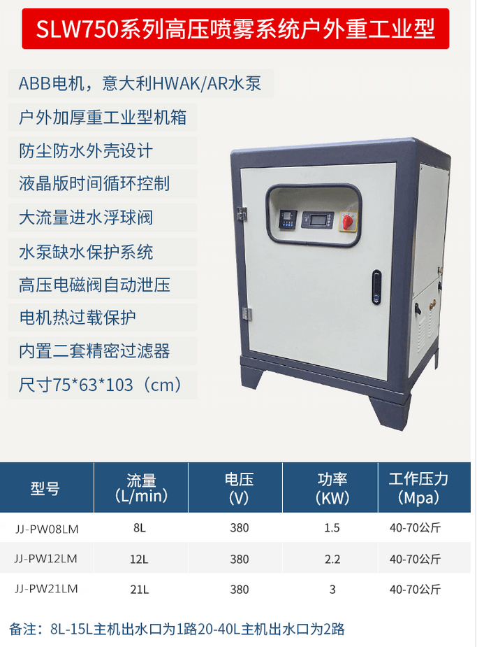 4.可靠:超高壓微霧加濕器主機(jī)采用進(jìn)口工業(yè)型柱塞泵,可24小時(shí)長期連續(xù)運(yùn)轉(zhuǎn),噴頭及水霧分配器 無動(dòng)力易損部件,在高粉塵環(huán)境中也不損壞