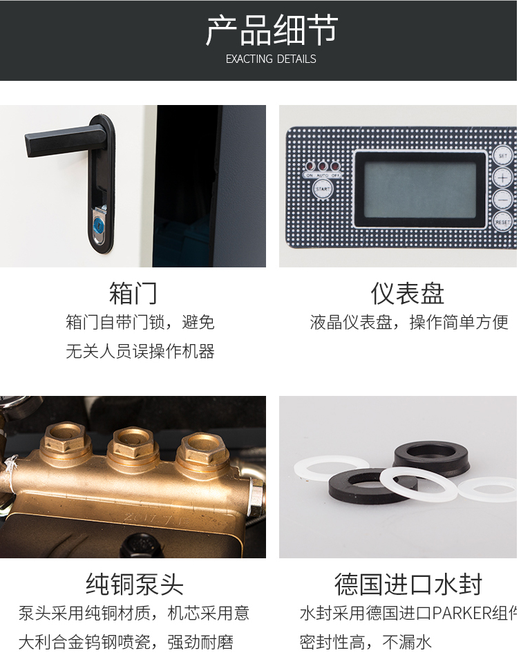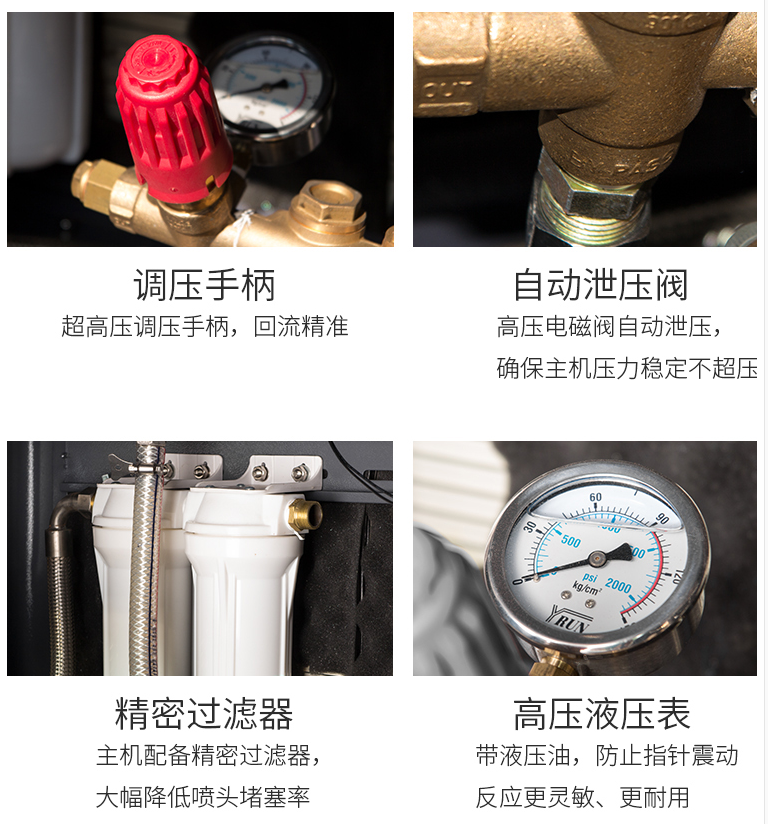 5.安全自動(dòng)泄壓:當(dāng)噴霧機(jī)停止工作時(shí),機(jī)體自動(dòng)將高壓噴管的壓力釋放,防止噴頭滴水。