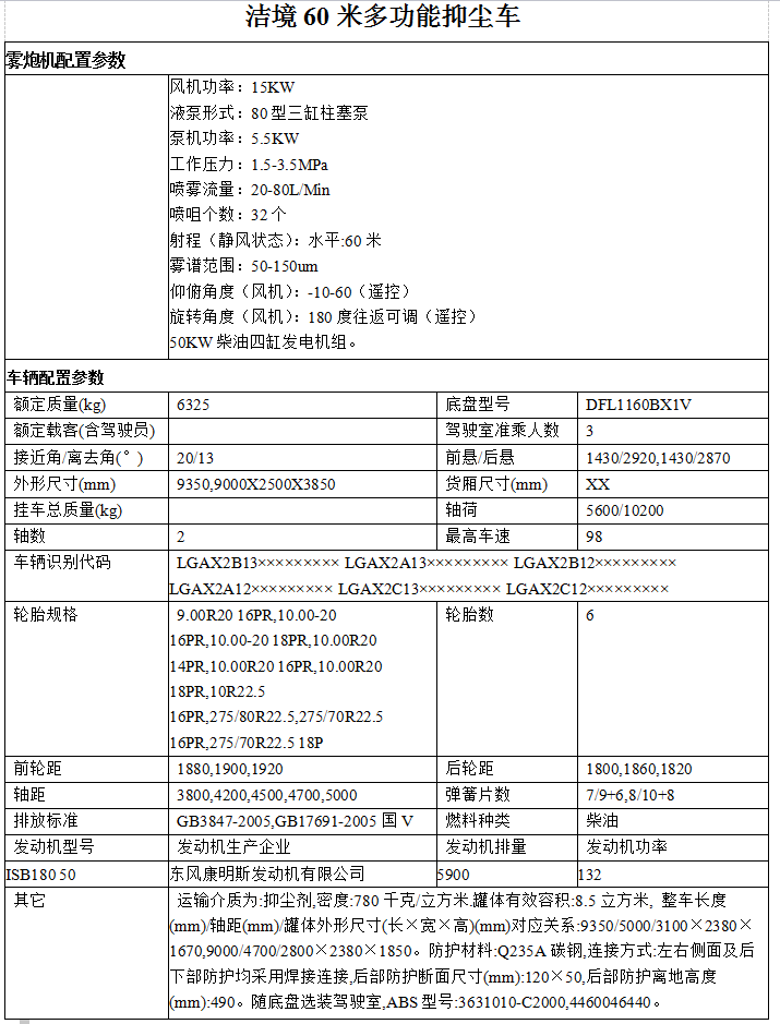 該霧炮車負(fù)載的大型霧炮可噴射60米遠(yuǎn)、30米高的水霧,相比普通灑水車,另外,同樣10噸水,普通灑水車只能噴灑10分鐘,而采用該車可以噴灑1個(gè)小時(shí),覆蓋面積超過(guò)3萬(wàn)平方米,大大提高了水資源利用率。