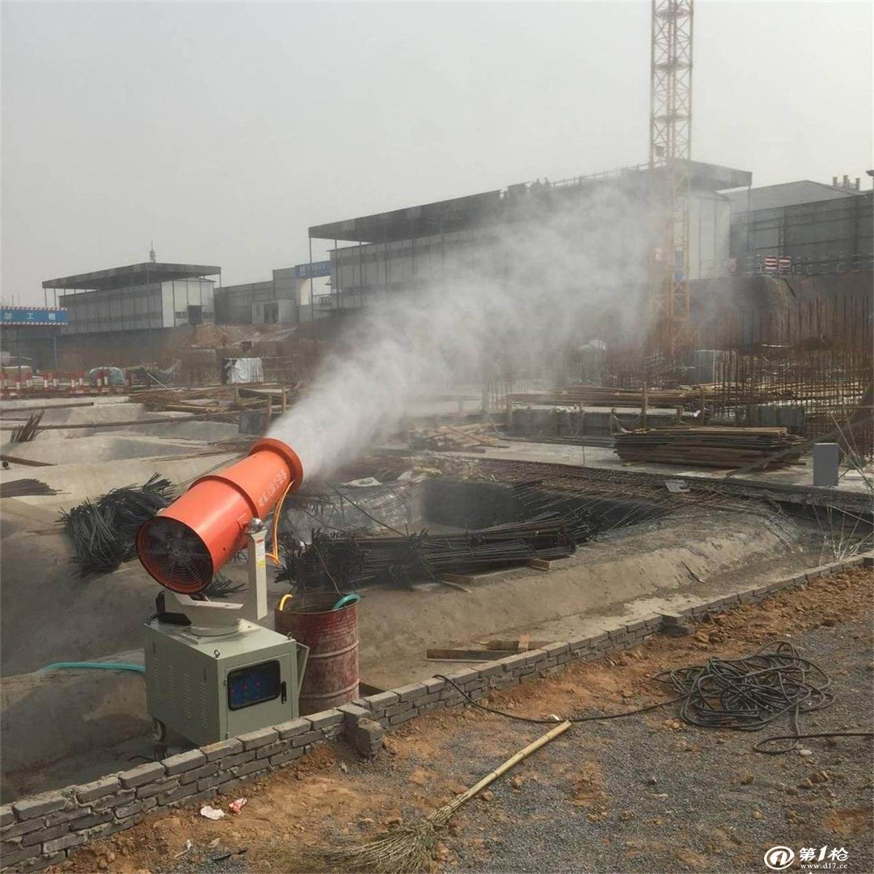 1.風(fēng)力強(qiáng)勁,射程高遠(yuǎn),穿透性好,覆蓋范圍廣,工作效率高,噴霧速度快。對(duì)容易產(chǎn)塵的堆場(chǎng)噴霧除塵時(shí),噴出霧粒較小,與粉塵接觸時(shí),易吸附粉塵顆粒,快速抑塵降塵。