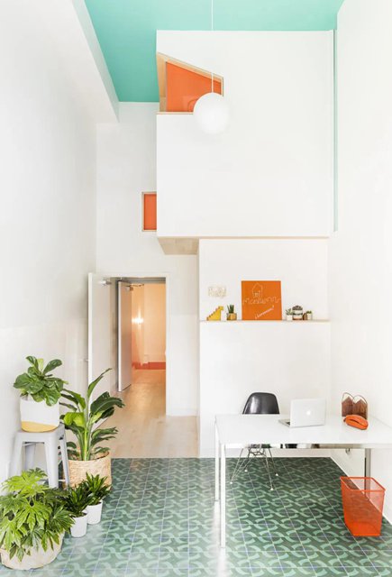 Divisions between rooms are made with furniture to provide flexibility so that the space can be transformed for special events including performances organized by the school"s artist-in-residence.