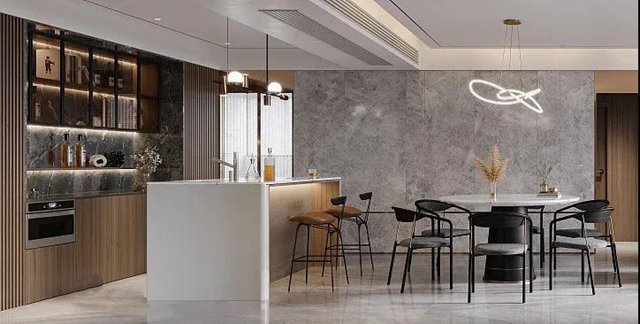 餐廳采用西廚的設(shè)計理念,實現(xiàn)更細(xì)致的功能區(qū)分,將日常生活的各種可能都考慮進(jìn)去,從而優(yōu)化我們的品質(zhì)生活。