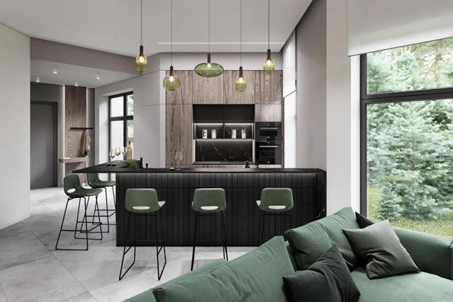 中心島臺的清新餐吧
