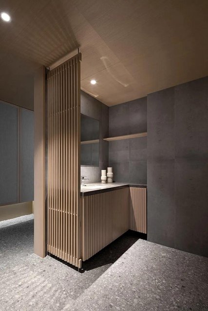 衛(wèi)生間干濕分離,水磨石的地板磚,看著就很舒服。干濕分離使用起來也方便,高峰期的時候,一家人使用不打擾。