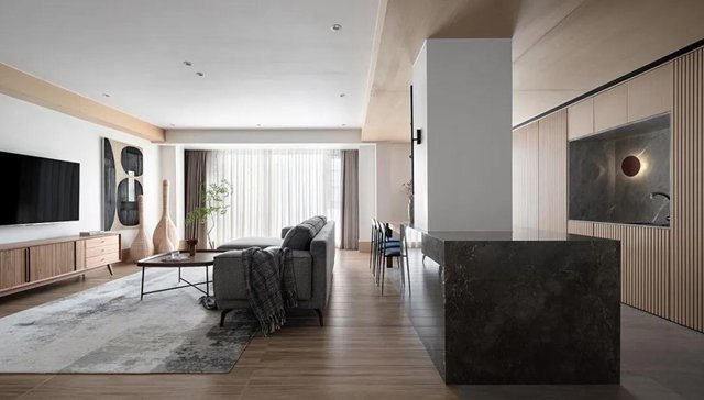客廳中不斷出現(xiàn)的木,都展現(xiàn)著它本身的模樣。木色的深淺、木紋的走向各不相同,于是千萬種風(fēng)情就鋪展開來。薄紗軟榻,等待清風(fēng)徐來。