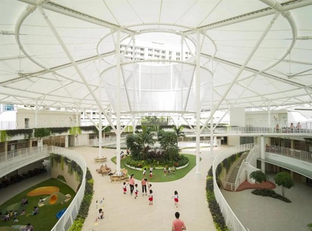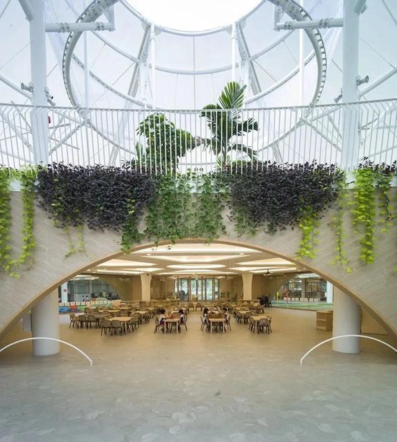 綠植融于建筑,讓整個(gè)場(chǎng)地具有連續(xù)性,散發(fā)著溫暖的氣息,營(yíng)造出令人興奮和溫馨的“家”的氛圍,促進(jìn)了兒童體驗(yàn)式和感官式的學(xué)習(xí)與體驗(yàn)。