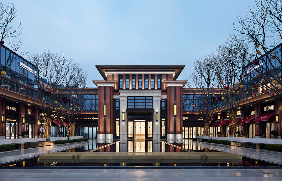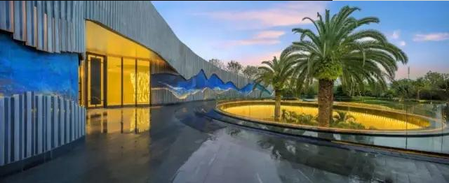 在地塊空間充裕的項目上,售樓處前場景觀區(qū),一般都會配有儀式感較強的水景和長長的硬質(zhì)路面,有些是中軸對稱設(shè)計,莊重感極強,也就是以“高位打擊”的方式,讓客戶產(chǎn)生仰視之感。