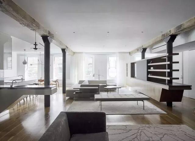 工業(yè)風(fēng)的美,在于不多矯飾的原始和質(zhì)樸,也在于粗獷外表下掩藏其中的時(shí)尚張力與精致享受。黑白灰色系十分適合工業(yè)風(fēng),鮮明的對(duì)比賦予了整個(gè)空間強(qiáng)勁的戲劇張力,令整體看起來簡約、高端又極為精致優(yōu)雅。