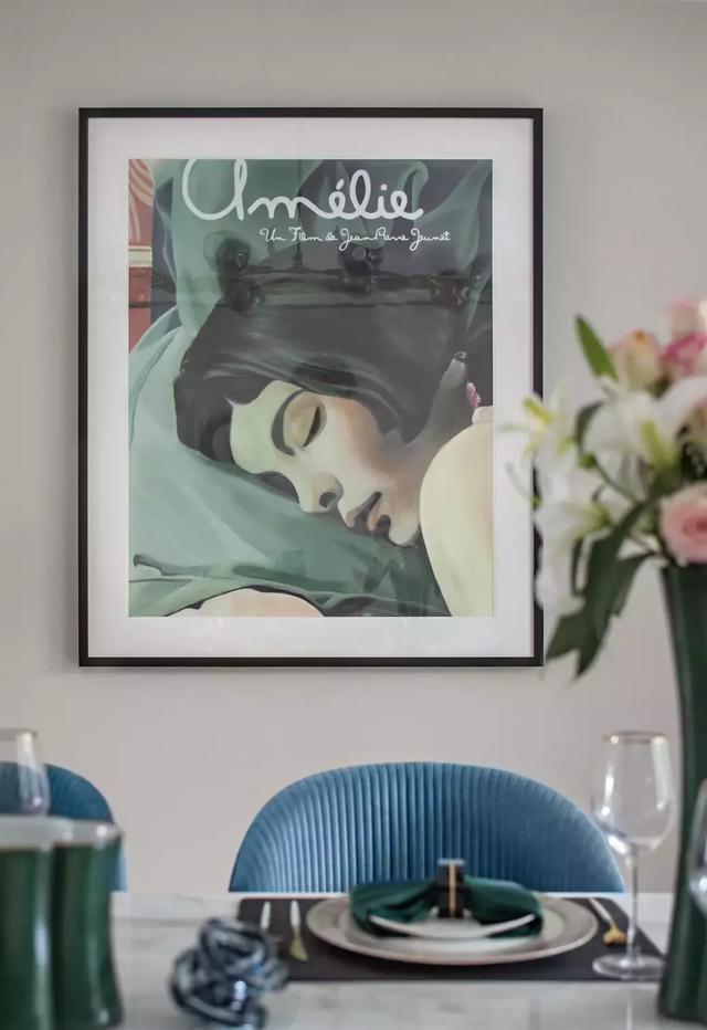 《天使愛美麗》中的其他人物形象以同樣的掛畫形式呈現(xiàn)在主臥的淺色背景墻上,與白色的天花相得益彰,流露輕松自然的生活氣息。