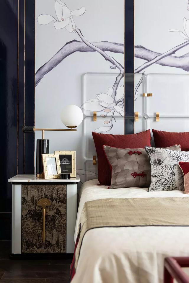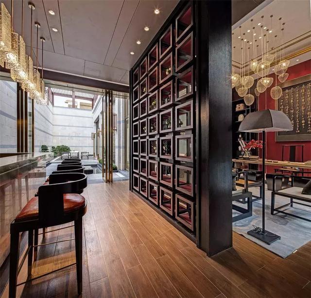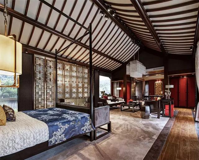 挑高的屋宇、兩側(cè)全明落地門窗的設(shè)計,引入大量自然光線與氣韻。整齊光潔的屋梁,精致大氣的柜體,舊時中式床榻椅具,針腳細膩的絲質(zhì)床品,再現(xiàn)了舊時合院生活的典雅,使居住者于此,心中疏朗又宏大。