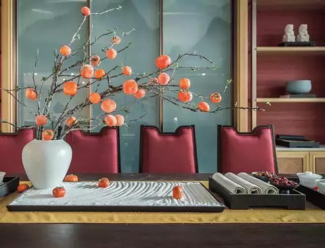 茶道的古韻古香透露著恬淡優(yōu)雅的生活氛圍。脫葉已疏,幾株熟透的柿果壓枝;雕花柔美,更顯木版畫上樓閣的剛勁肅穆,折射出設(shè)計對傳統(tǒng)合院式空間意境的追求與傳承。