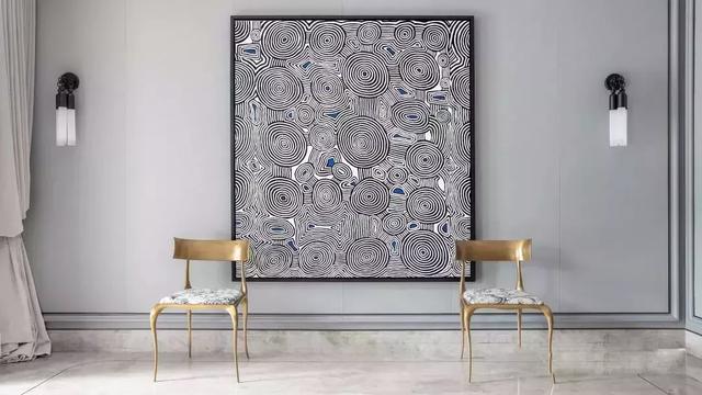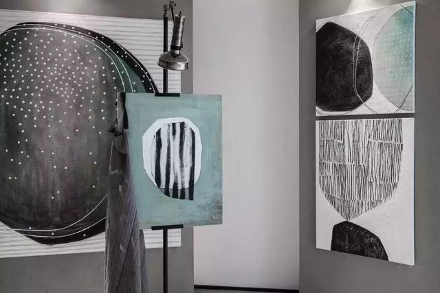 通過(guò)門(mén)廳進(jìn)入室內(nèi),客廳畫(huà)廊成為人的視覺(jué)停留點(diǎn),點(diǎn)簇、曲線構(gòu)成的藝術(shù)畫(huà)作,不斷重疊排列,猶如樹(shù)的年輪循環(huán)往復(fù),在未來(lái)的生活留下時(shí)間的記憶。