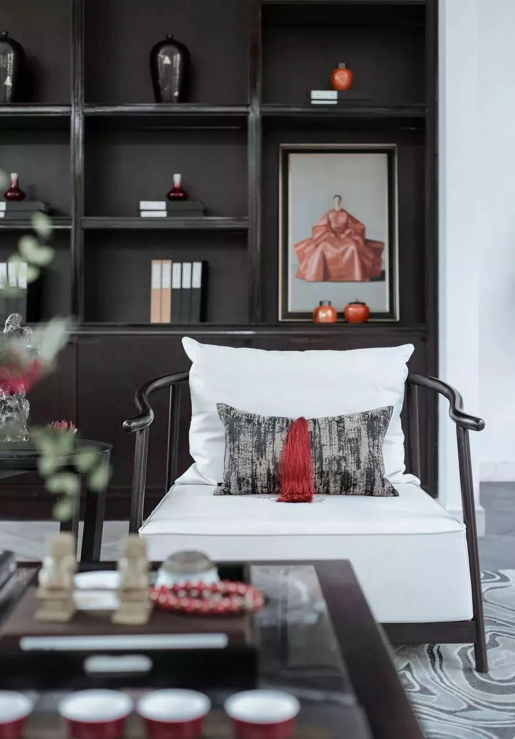 從東方文化中汲取靈感,重新解讀傳統(tǒng)與傳承。在西方設計界流傳著一個觀點:“沒有中國元素,就沒有貴氣。”中式風格的魅力可見一斑。紅色宜作為空間的主題色或點綴色,最好是新中式家居裝飾本身的色調(diào),以強化裝飾效果,背景色最好是黑白灰中性色。