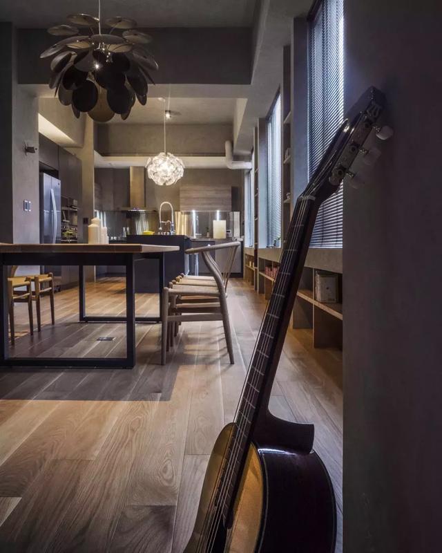整體空間規(guī)劃是依業(yè)主廣泛興趣喜好創(chuàng)造出的場景,以音樂為核心,靠窗長條空間是烹煮美食,品味珍釀,閱讀書寫,希望創(chuàng)造出可安靜沈淀,也可朋友聚會交流,臨著快速道路,灰色斑駁堤防延續(xù)內(nèi)外,音樂繚繞,杯觥交錯,高談闊論…與原荒蕪孤寂景像呈現(xiàn)出對比性的河岸居所。