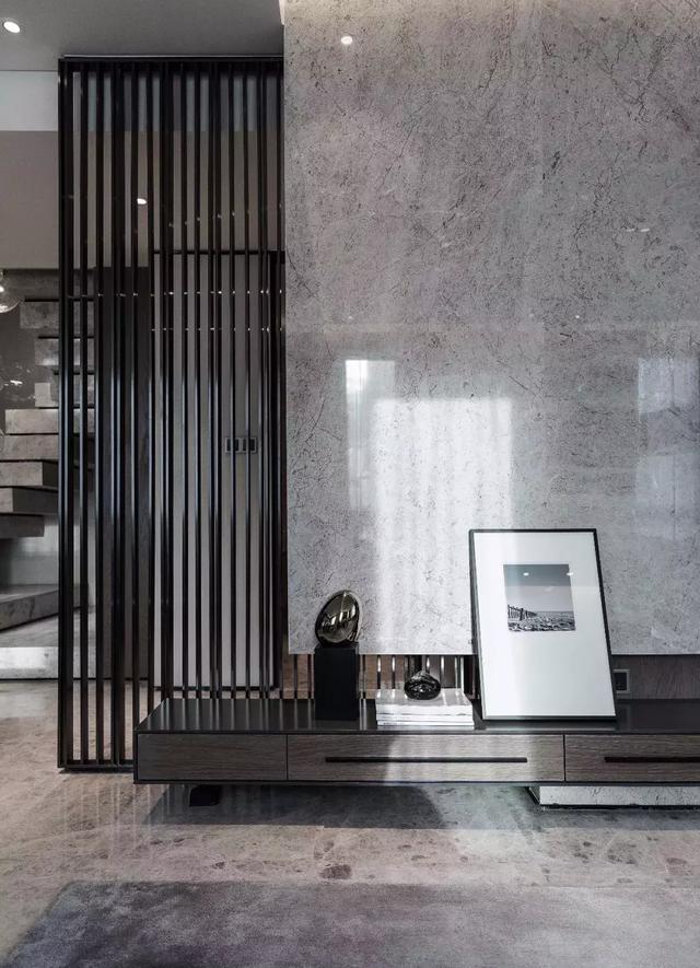 不錯,優(yōu)雅從容的生活,必然少不了好書的熏陶,于是上疊的書房以獨立的空間姿態(tài)呈現(xiàn)。開放式書架、石材端景條臺,搭置出沉穩(wěn)雅致的空間氣息。書桌面對的整面書柜門采用鋁框玻璃門,陽光灑下,又有一種通透貫穿始終。