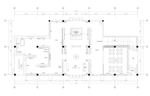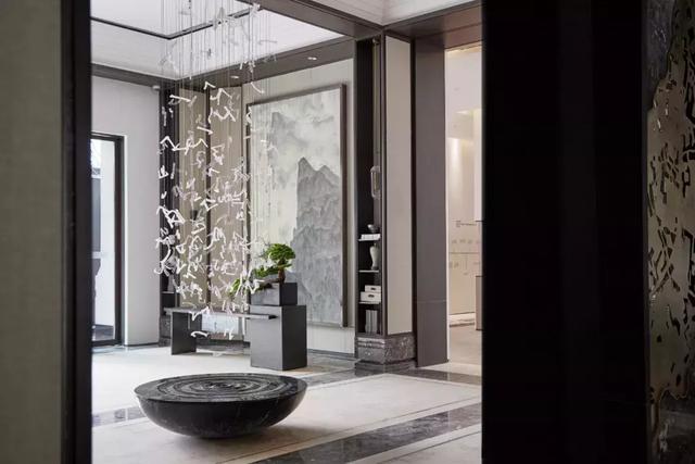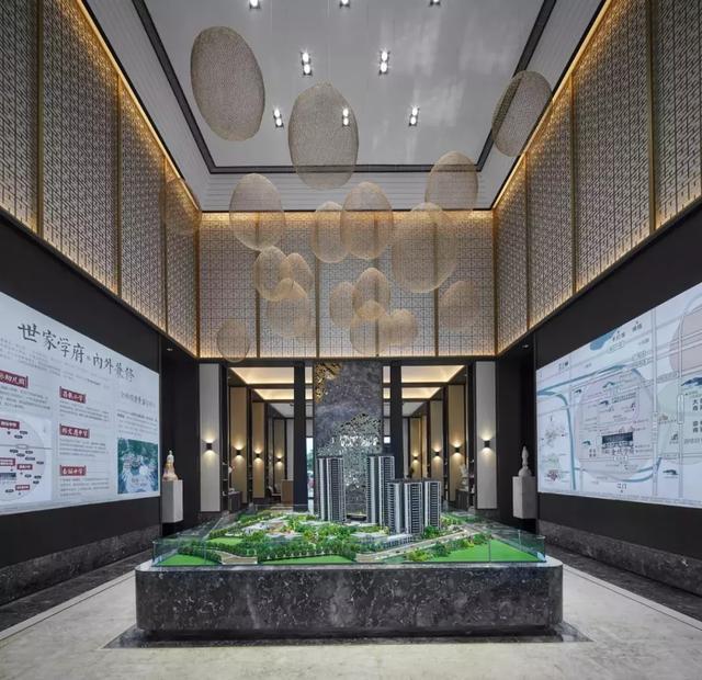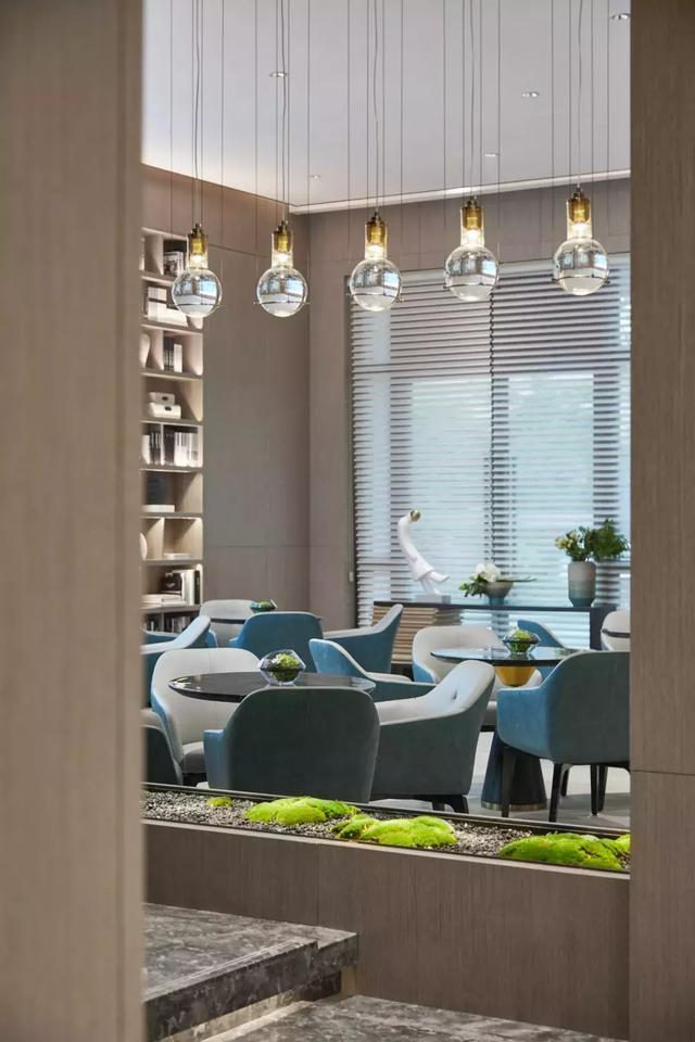平衡對稱的布局銜接大廳、沙盤區(qū)與接待區(qū),在整個(gè)空間中,設(shè)計(jì)師將傳統(tǒng)與現(xiàn)代的界限模糊化,卻各自保留其精致奢美的質(zhì)感,融而不斷,形成空間的通透性,呈現(xiàn)虛實(shí)相間的效果。