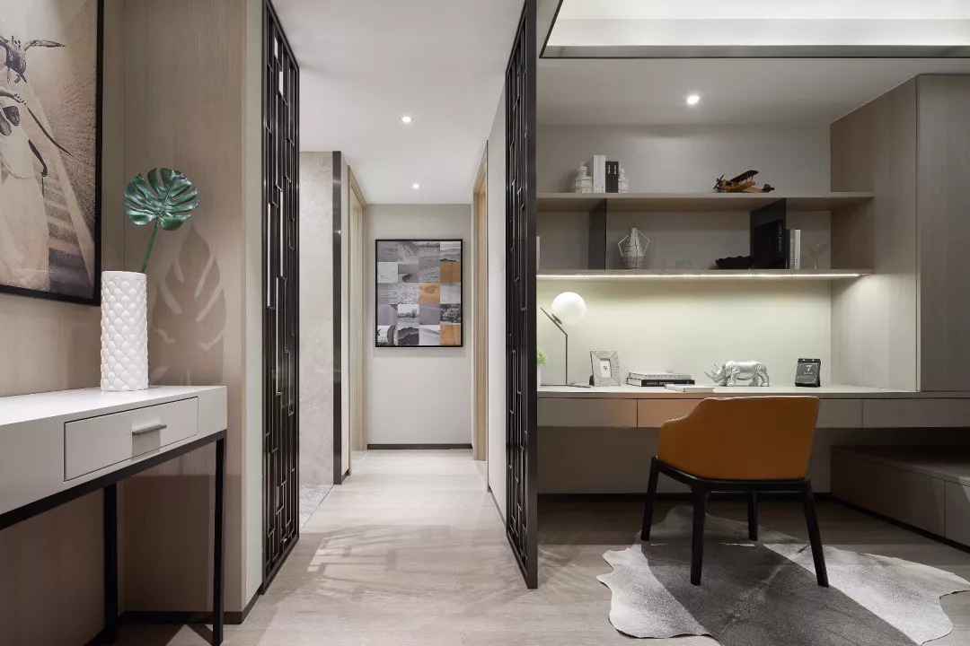 除此之外,書室及長輩房劃分在毗鄰生活陽臺一處,透過自然光線優(yōu)化室內(nèi)環(huán)境的美感,消除人處固定空間內(nèi)的枯燥感。