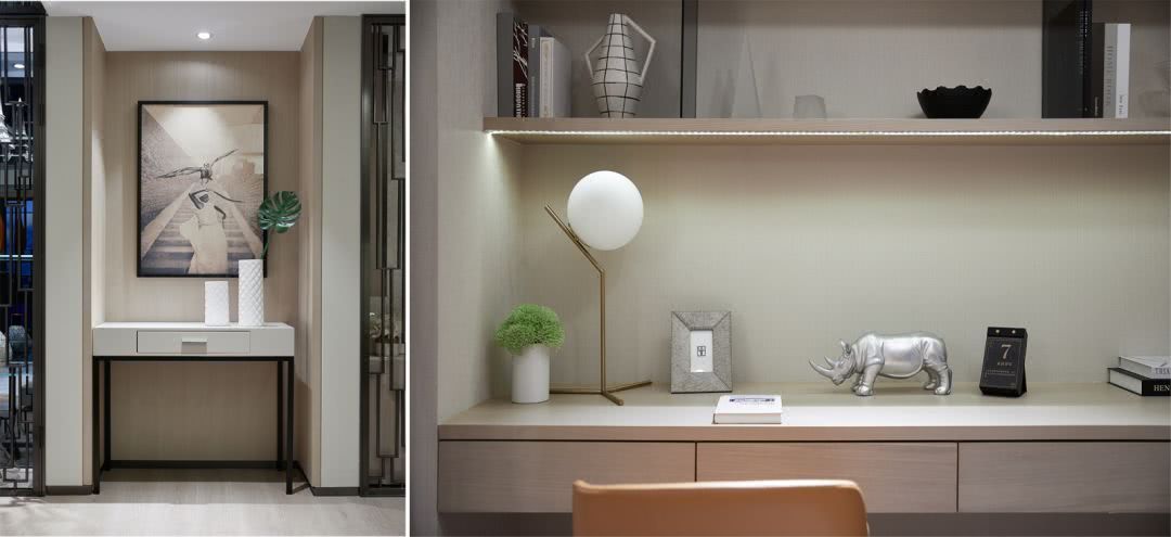 多功能房作為過渡區(qū)域,演繹整體戶型空間的書房角色,引入自然光線,既保證使用過程中的視線明朗,也提供了個人休憩的放空區(qū)域。