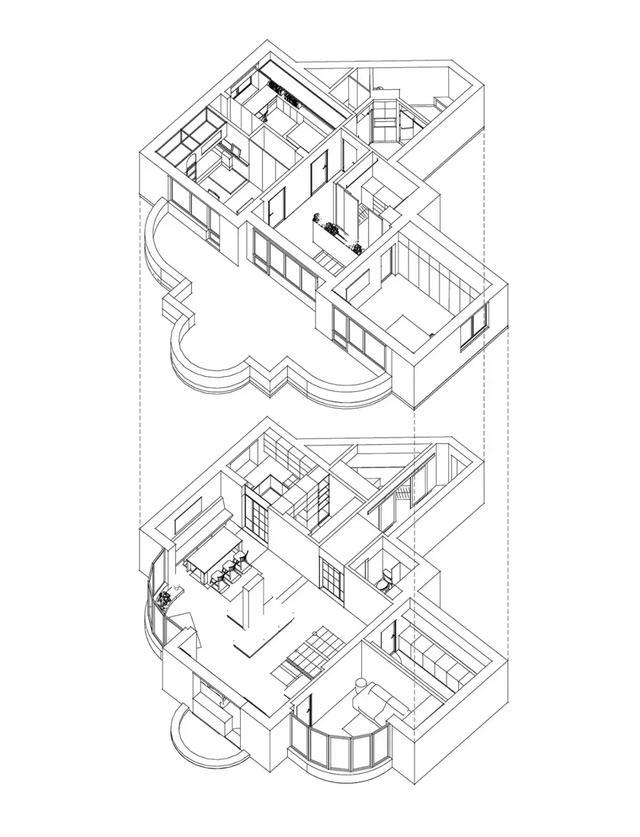 ▲建筑并不是傳統(tǒng)的方正格局,獨(dú)有的弧形線條為空間增色不少,設(shè)計(jì)師們便從“非常規(guī)”的視角重新改造功能區(qū),拆除了公共空間的部分隔墻,保證光線充沛的涌入室內(nèi)。