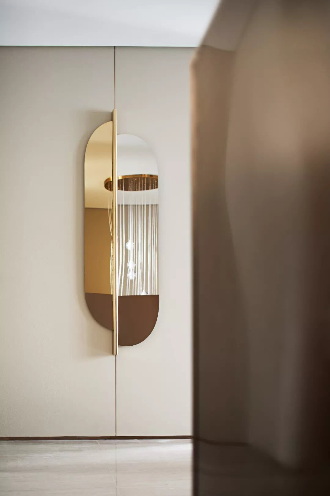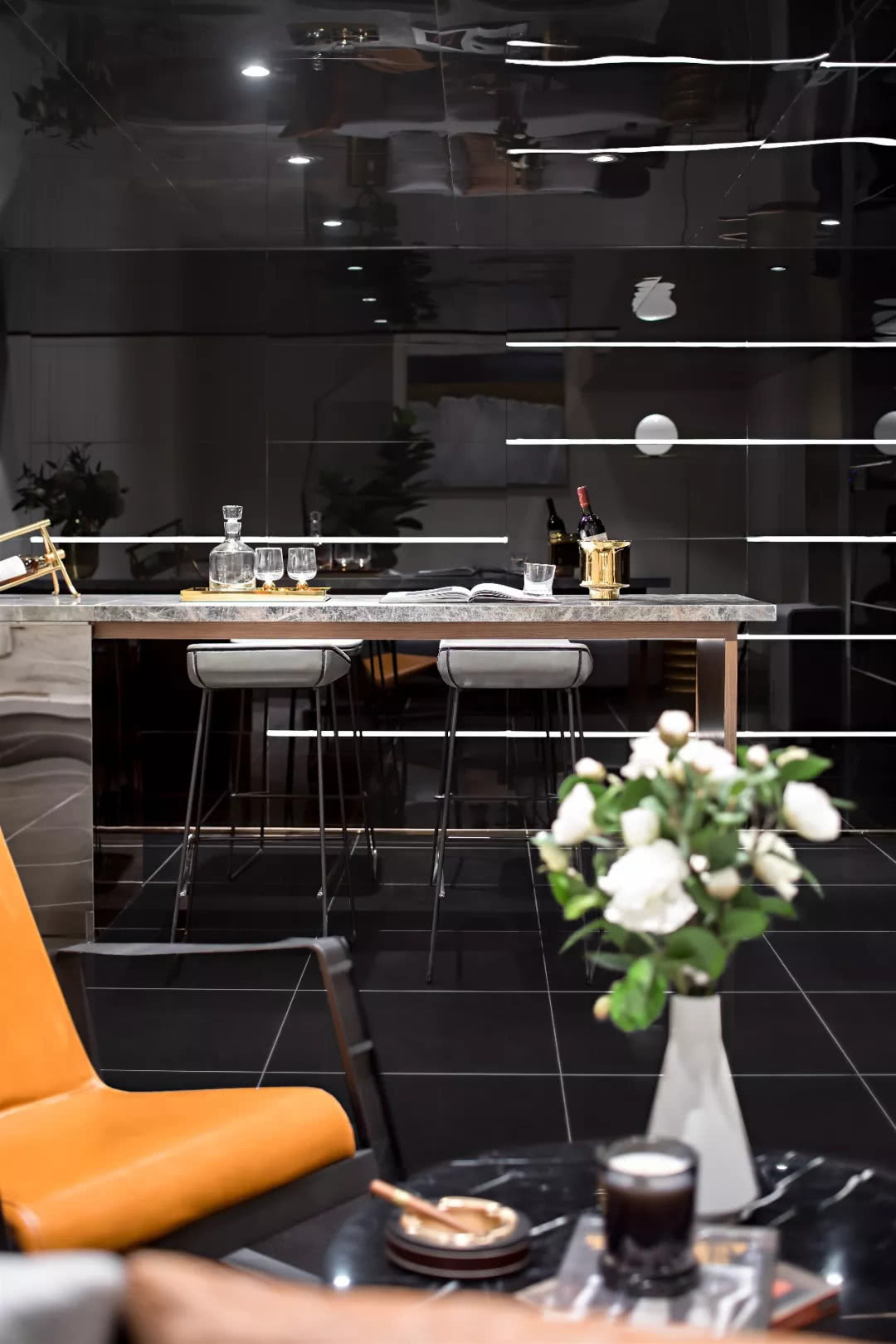 “中疊以簡約雅致的設(shè)計語言來鋪展空間,金屬古銅作為主調(diào)修飾其中,并結(jié)合不同材質(zhì)、肌理、色澤與造型的運用,以克制平衡之道呈現(xiàn)都市輕奢感。”設(shè)計師方磊如此總結(jié)道。