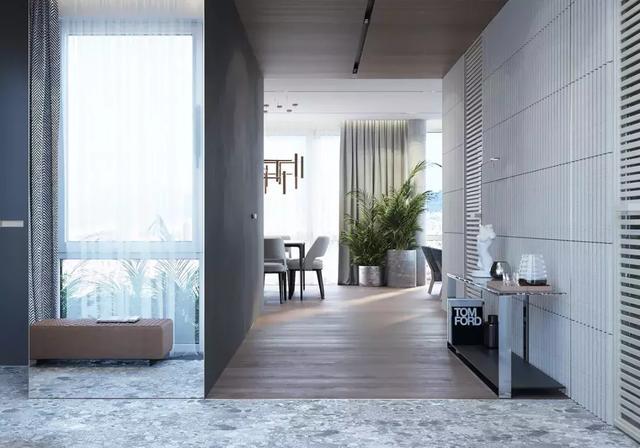 材質(zhì)上有著各種各樣的紋理,包括石材、木材,和一部分的黃銅材料。這種混合讓室內(nèi)用有稍稍華貴的感覺。