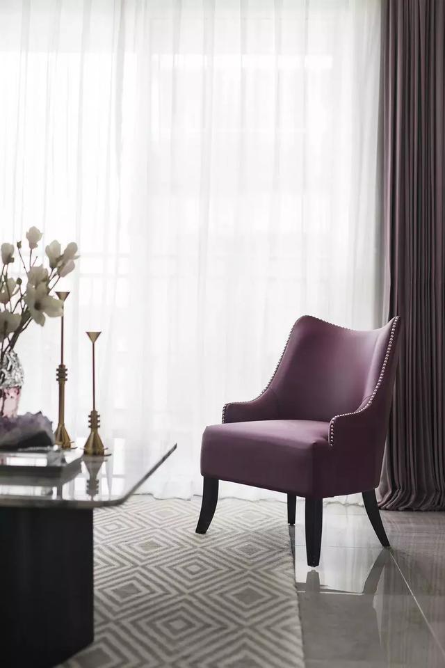 設(shè)計以霜灰色的素雅糅合紫色的濃郁,形成法式的優(yōu)雅氣韻,猶如柔光下輕揚起的一曲華爾茲,滑步旋轉(zhuǎn)間,綻放出居室旖旎浪漫的情緒。