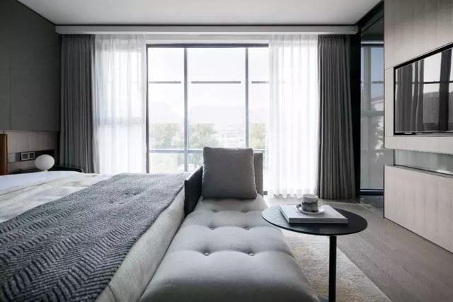 體塊質(zhì)感的空間處理延續(xù)至起居空間,更在于描繪生活的沉靜,閱歷積淀下的品味。舒適、通透、寧靜,是屬于臥室空間的關(guān)鍵詞。