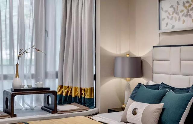 在臥室,中式的大氣內(nèi)斂更為突出,黃與藍(lán)的搭配出奇的平和,安靜卻極富感染力。