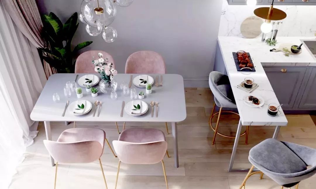 當(dāng)臟粉色注入清淺的灰空間,嬌俏的色澤配搭著冷靜的色調(diào),極具視覺張力,以同樣浪漫的紫色作為點(diǎn)綴,增加柔美氣息。