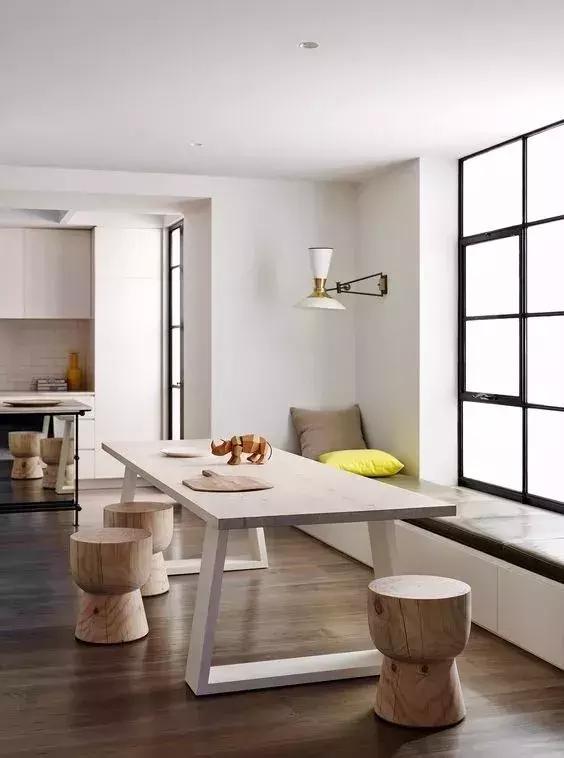 休閑而不失浪漫的卡座設(shè)計(jì),向來(lái)是餐廳、酒吧、咖啡館等場(chǎng)所的標(biāo)配。將飄窗改成卡座不僅能夠有效解決戶型問(wèn)題,增加收納機(jī)能,舒緩空間布局,而且擁有超高的顏值,給人一種滿滿的小資情調(diào)。